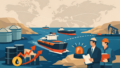 Flat-design editorial illustration showing Asia-Pacific and U.S. representatives forming energy partnerships through LNG shipping, ports, and power infrastructure amid global supply risks. Global Economy